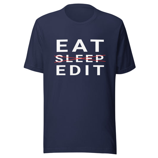 Eat/Sleep/Edit - Photography / Videography T-Shirt - White Text